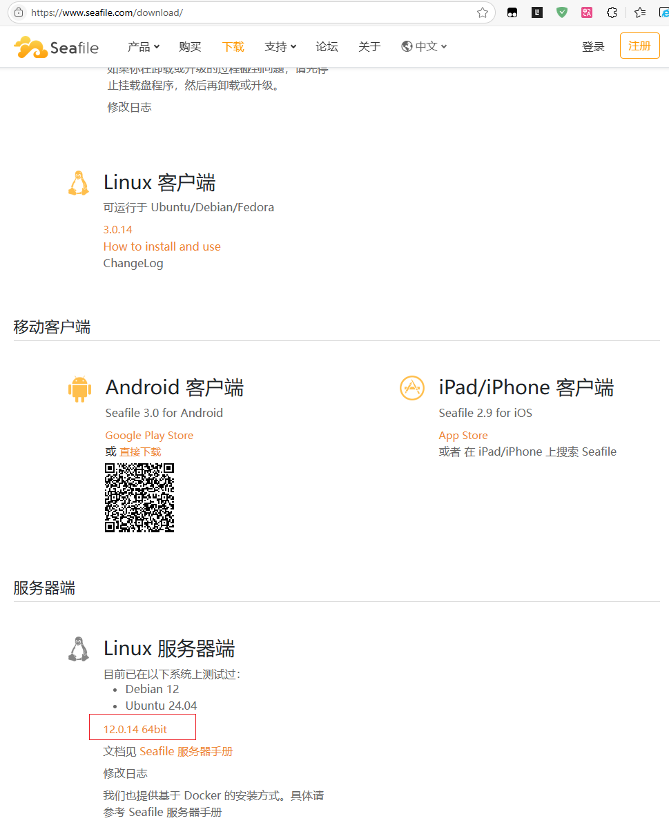 前往链接下载 - Seafile,下载版本服务端文件,如下图